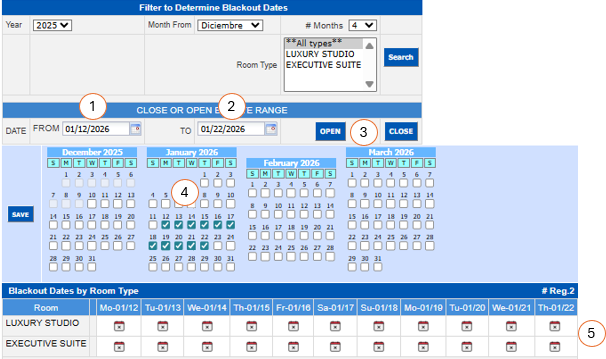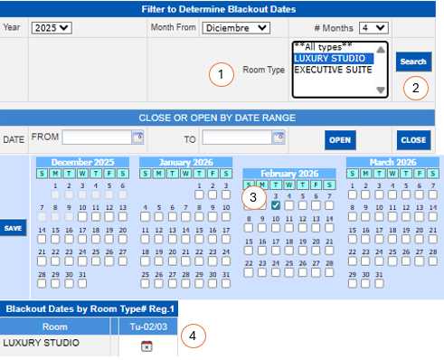 Room Type: The sale can be closed for the entire hotel or by Room Type.
