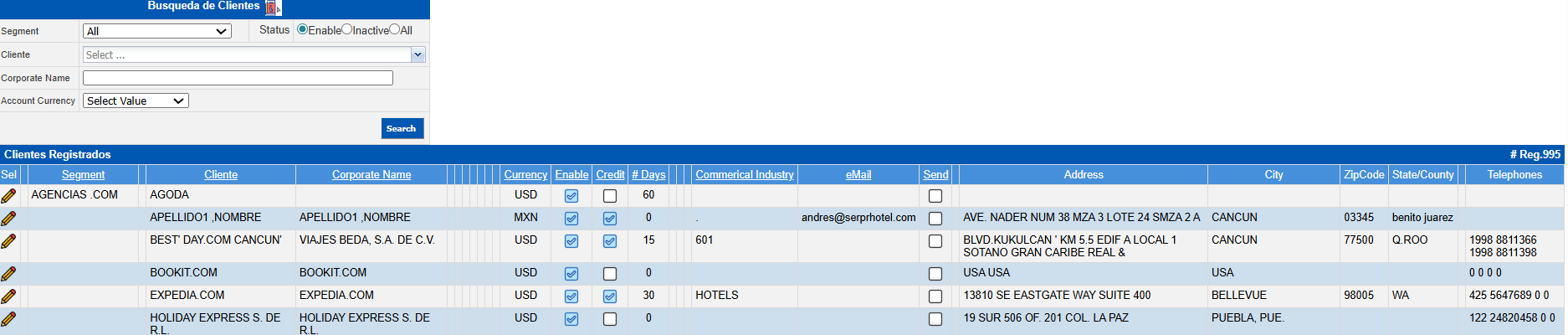 The modifications of the information of the registered customers are made, carrying out the following steps:Enter in: Administration (Back Office) → Accounts Receivable → Customers Catalog.Click on the Edit icon of the customer to which the information changes will be made in the Customer Registered section.Enter the new information in the corresponding fields.Click the Save button.