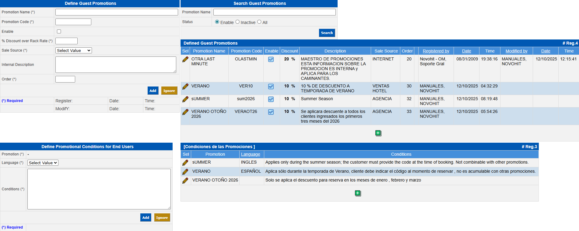 Delete Botton | Clicking this button will delete the selected promotion. |