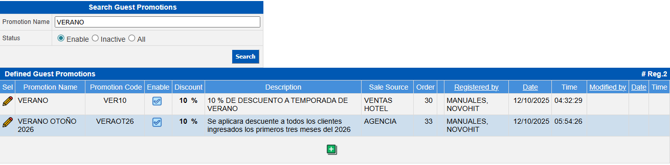 Enable | Check this box to keep the promotion in force, if you uncheck it, the promotion will not be available. ![]() See Sync with hotelRSV below for more details. |
