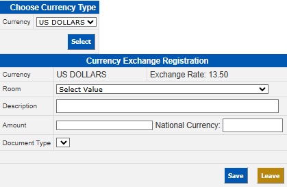 Room: Select the room or guest requesting the exchange. This field may be left blank if the transaction is for a non-registered guest.