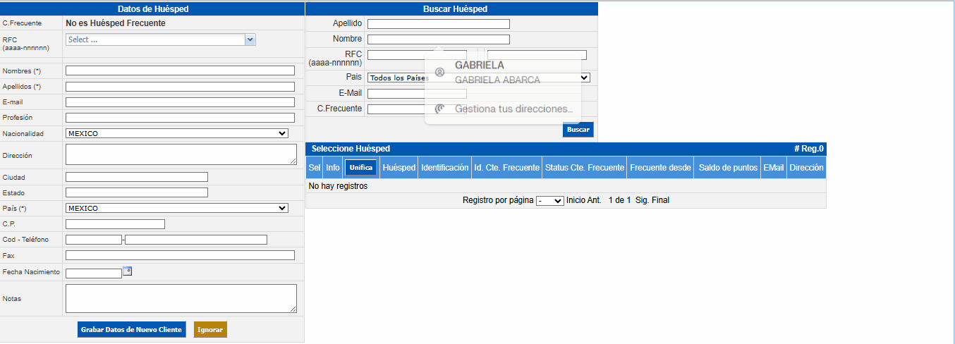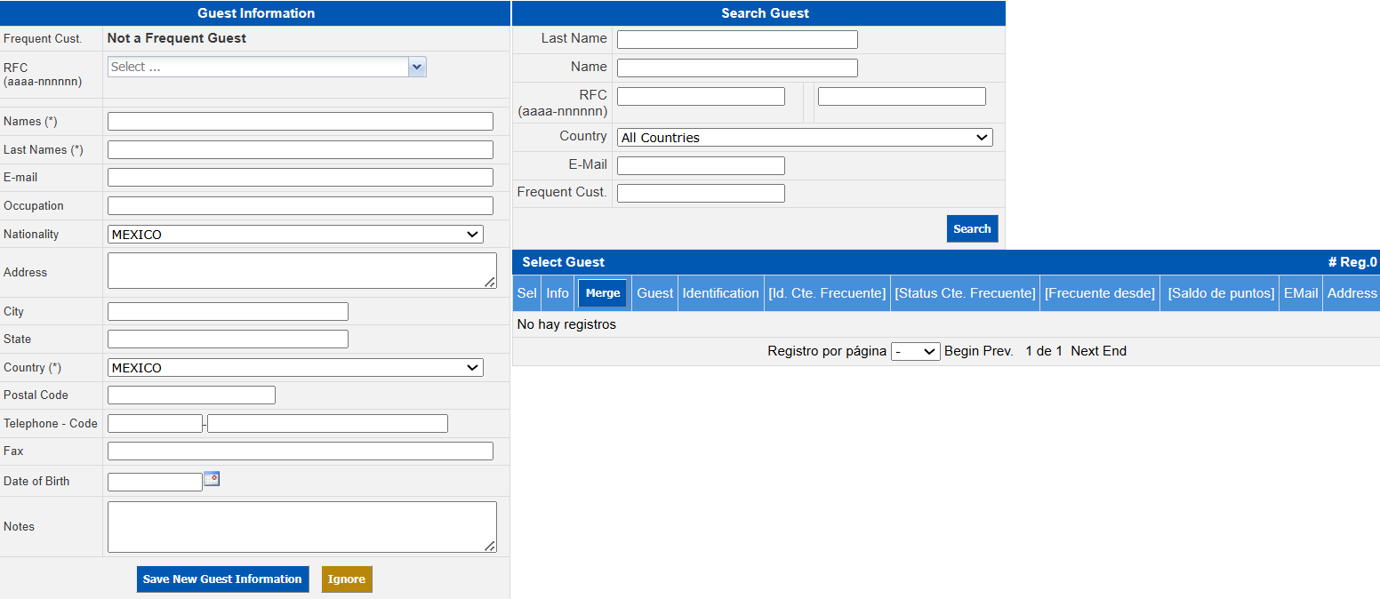 Go to the Search Guest section and enter the general information of the clients to be merged.