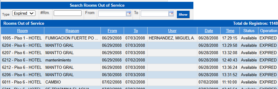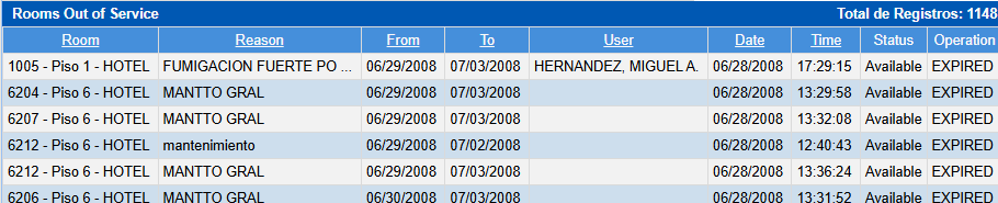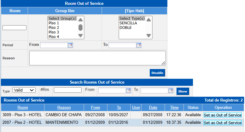 Rooms that are out of service will not be available for operation and therefore will not be available for booking or check-in at the front desk.