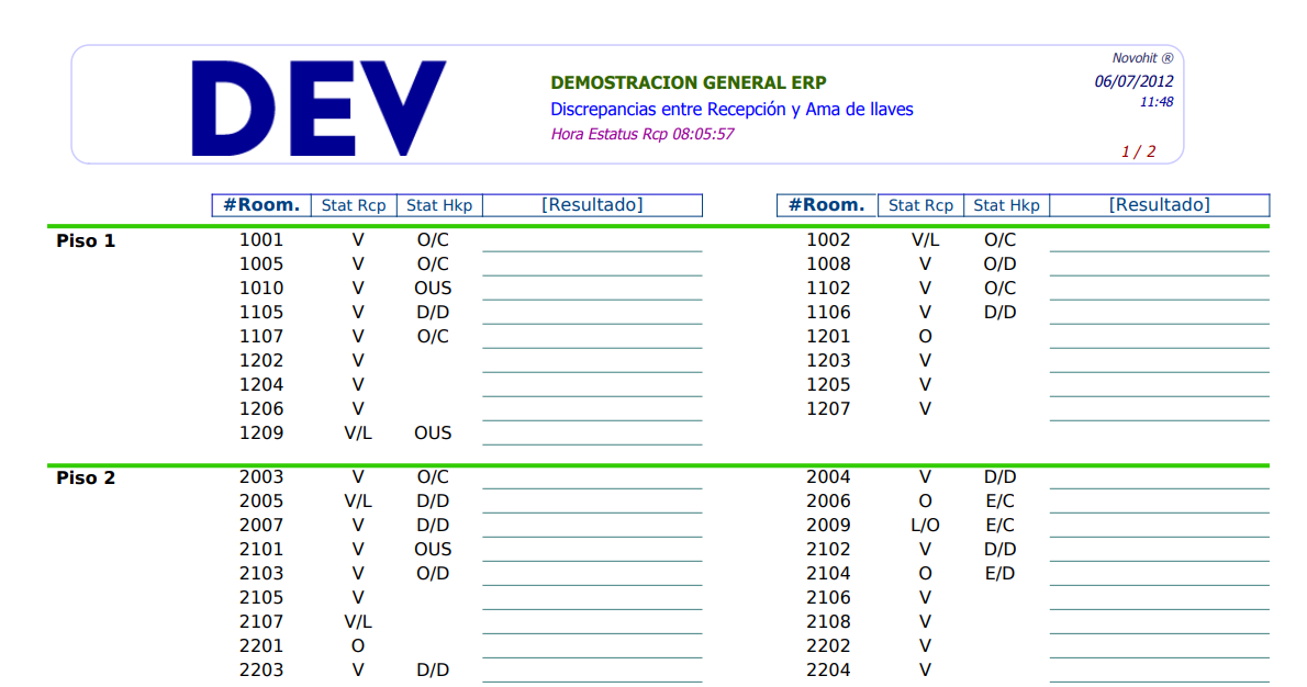 Status 1 | It shows the status room at the last check-in. |