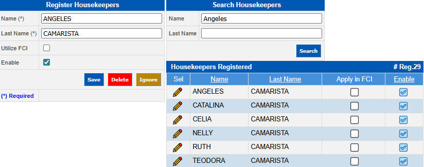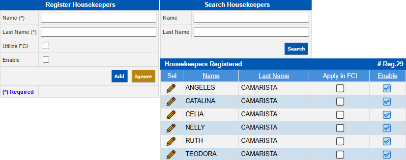 Enter the name of the housekeepers to be registered. |