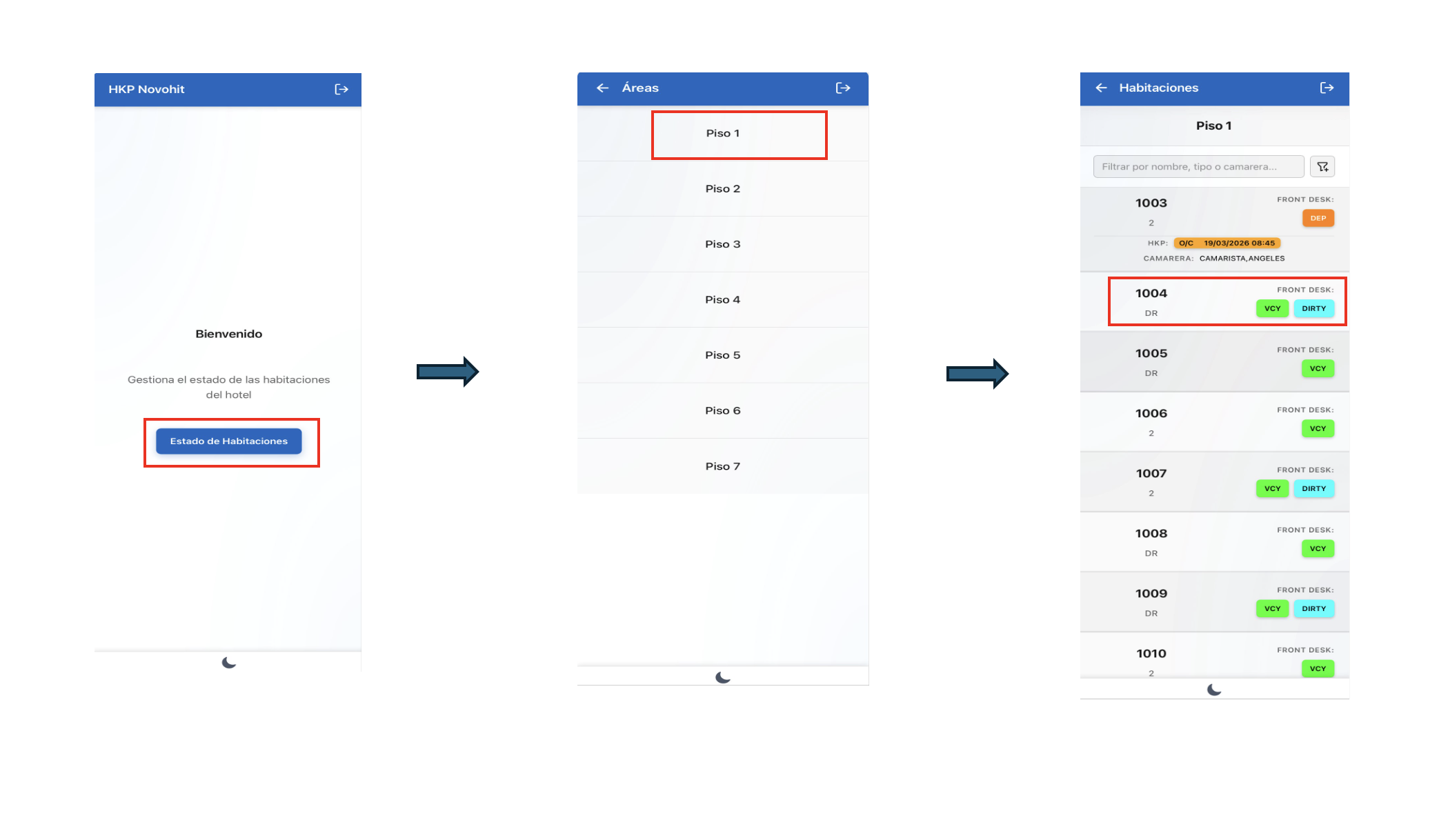 This app (webapp) allows housekeepers to update room status without interfaces with telephone switches (PBX/PMS); streamlining the operation of this department in a matter of seconds.HKPMobile by Novohit® operates on any touch screen with WiFi, with this app clean rooms are released immediately.