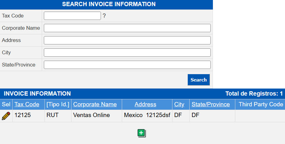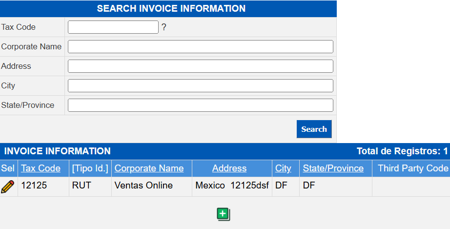 Tax Code | Enter the customer’s tax identification number (RFC) to be searched. |