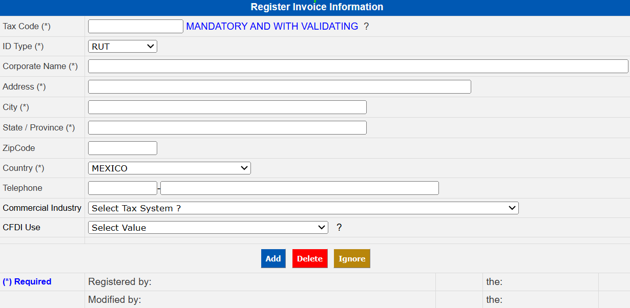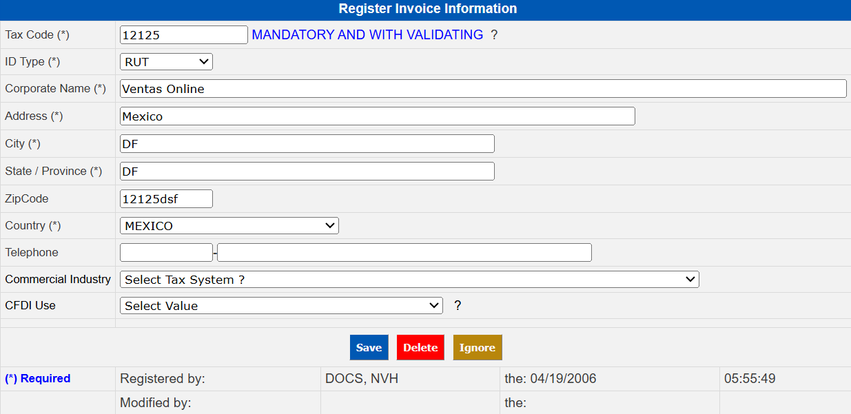 This option allows you to modify or delete existing invoice information records. To do so, follow these steps: