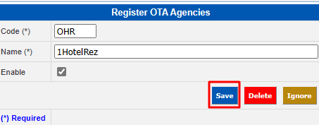 Code | Enter the code Siteminder assigned to the OTA agency. |