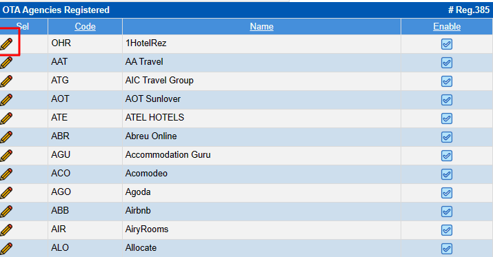 Enable | Click to see the OTA agency in the OTA agency table. |