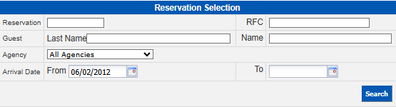 This is the reservation search section where you can use one or more of the following parameters: