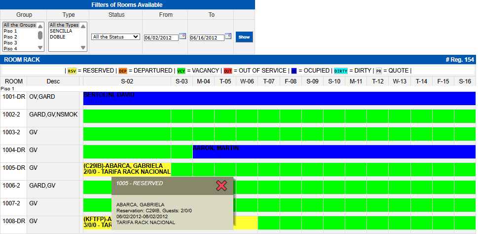 Allows to have a complete visualization of the availability in Room Management.