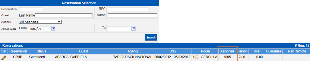 In case of assignment change, it will return to the initial window and you will be able to see that the reservation already has the room pre-assigned in the column called Assigned.