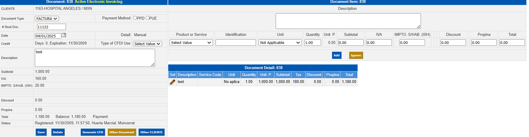 Description | Enter the concept of the item to be invoiced, i.e., the detail to be invoiced. |