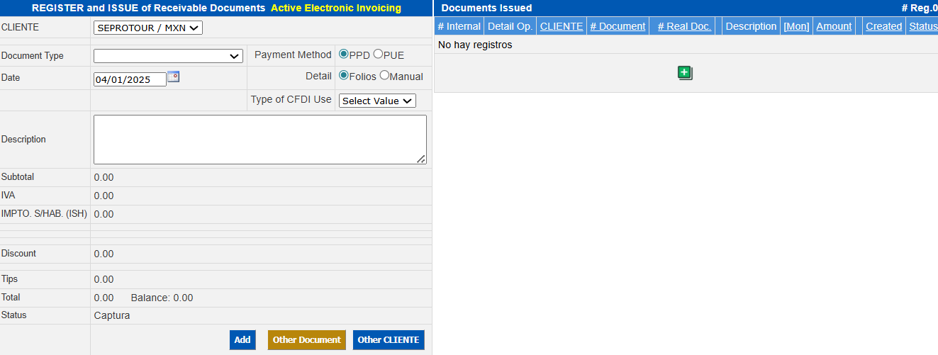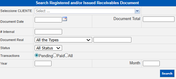 Document Type | It displays the types of invoices (National Invoice, Exempt, Export, etc.) you must select as appropriate and enter the folio of the invoice (Chile). |