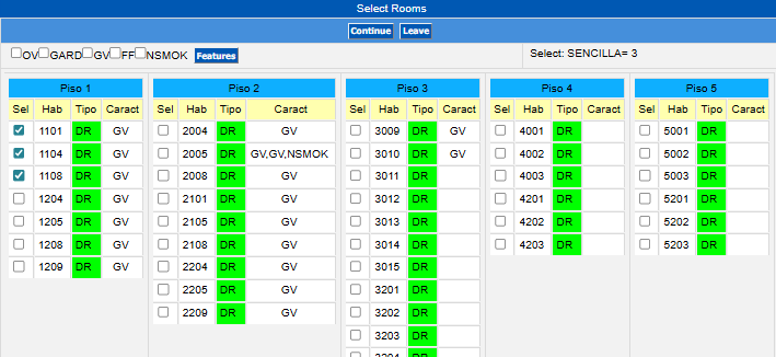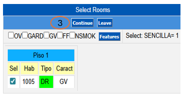 In case the reservation has pre-assigned rooms, these are the only ones that will be shown, just click on the Continue button.