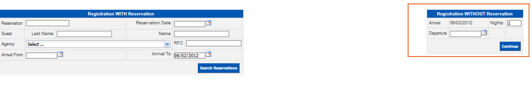 - Register WITH Reservation: these are fields used to search for reservations for Check-In.