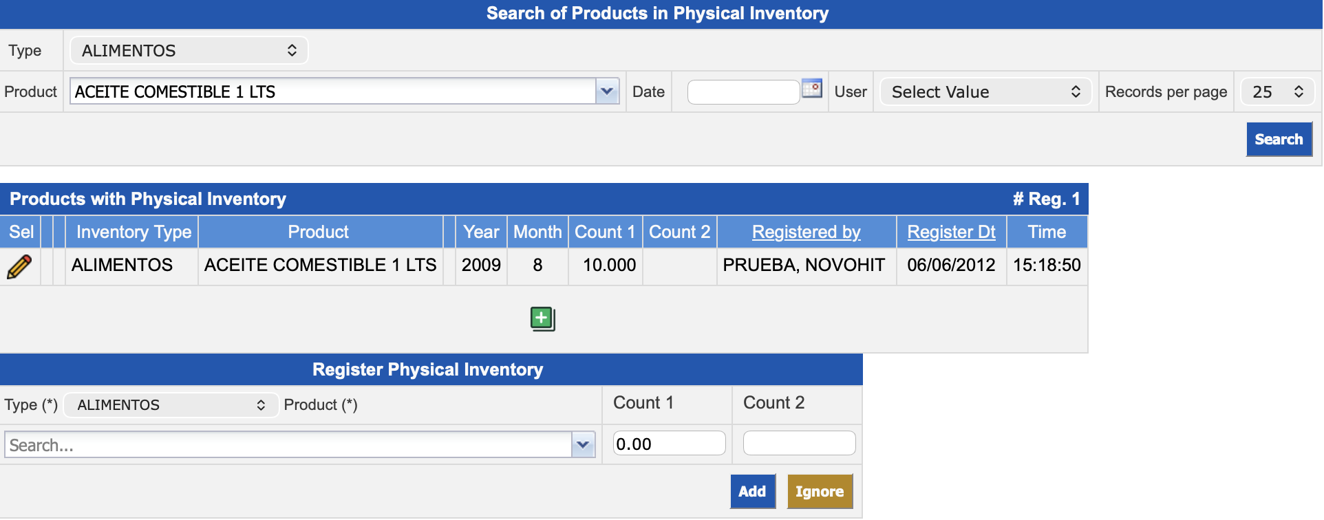 Search of Products in Physical Inventory: The search for products with registered stock is performed.