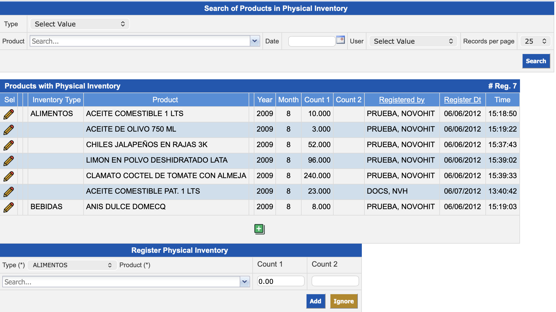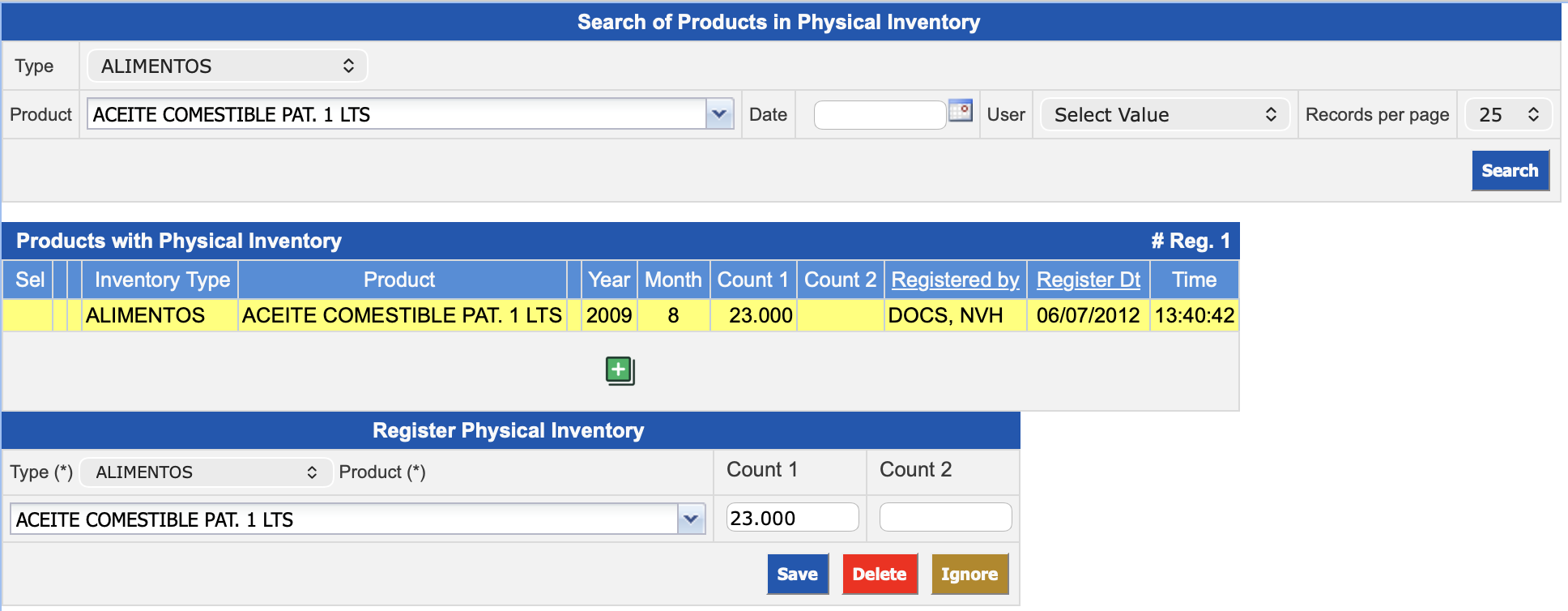 a search for the product. Edit the information in the appropriate fields in the Register Physical Inventory section.