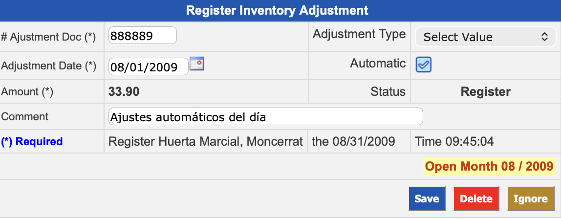To register an adjustment, you must follow the steps below: