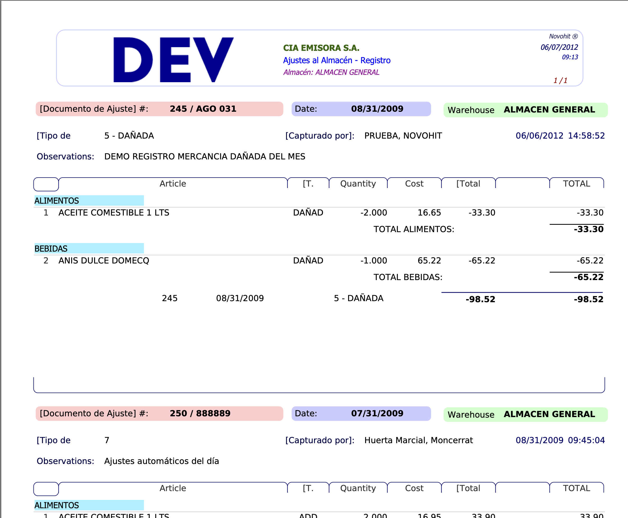 When performing physical inventories of stock and comparing them with the information in the system's Kardex, shortages and surpluses of products may be found. Also, you may find products that have lost their economic use value because they are obsolete or deteriorated.