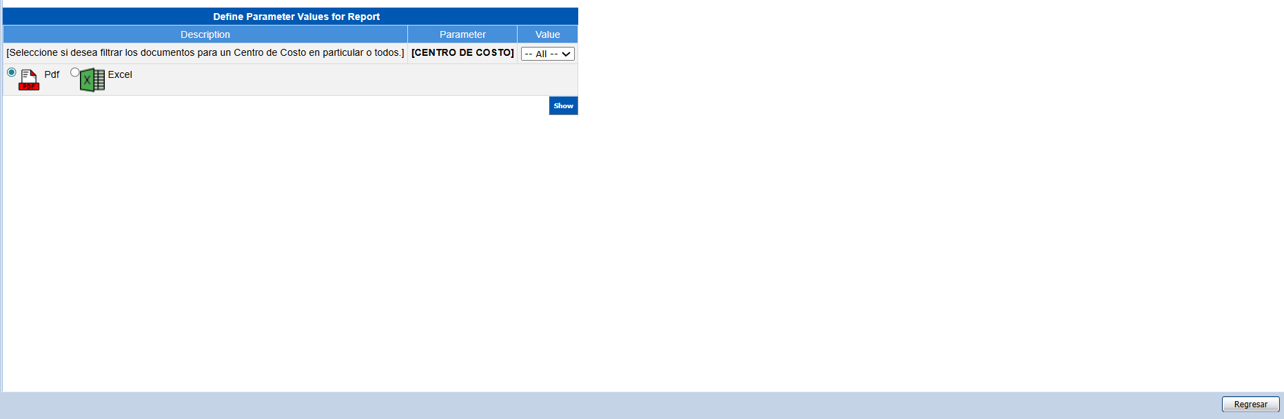 The Requisitions window will be displayed. In the Define Report Parameter Values section, select the specific Cost Center you wish to print, or leave it as All.