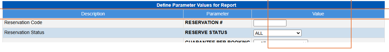| This report shows information on past and future reservations, as well as the combination of different parameters: - Reservation #: used to locate a specific reservation, if left blank it will show all reservations.