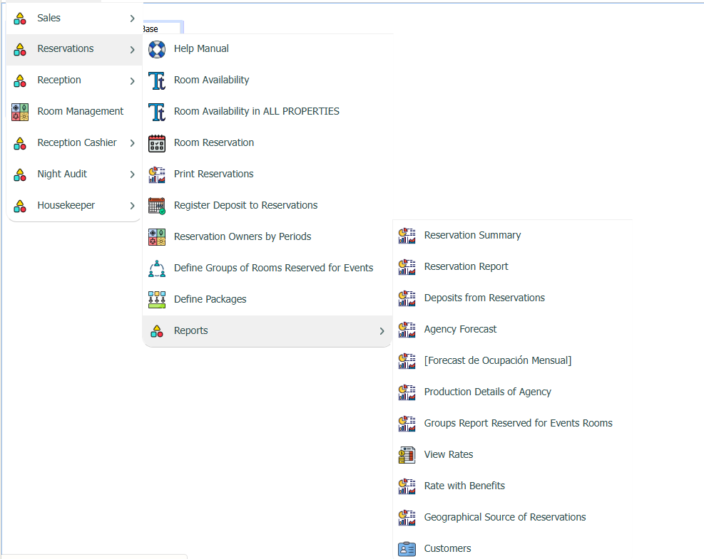 Reservation Summary | This report allows the analysis of registered reservations through a consolidated view of results, combining the detail of each reservation with indicators and totals that facilitate the evaluation of production for the selected period.