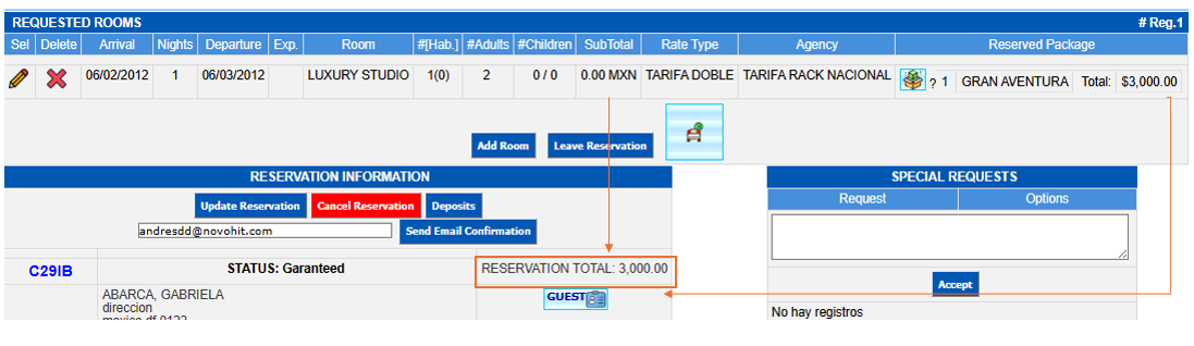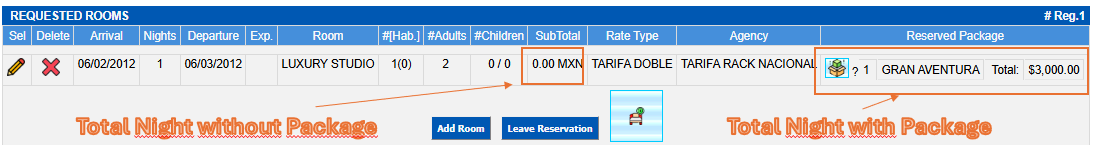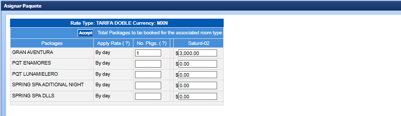 You will return to the screen where you will see the value of the package assigned to the reservation.