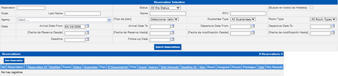 Search in All Hotels | When applied, within the search result, the hotel to which the reservation belongs will be indicated and it will not allow you to select the reservation to consult it in detail and/or modify it, since some data within the reservations depend on the selected hotel and this could generate inconsistencies in the reservations. When you select the search option next: