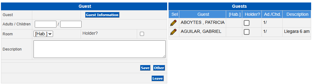 When a Group reservation is made it remains in the name of a title guest who is the person who blocks the rooms; in the case of Groups, you can enter the Rooming List which can be distributed in the rooms of the Group making each room of the Group in the name of each guest. To enter the Rooming List, do the following, Select: Front Office → Reservations → Room Reservation.