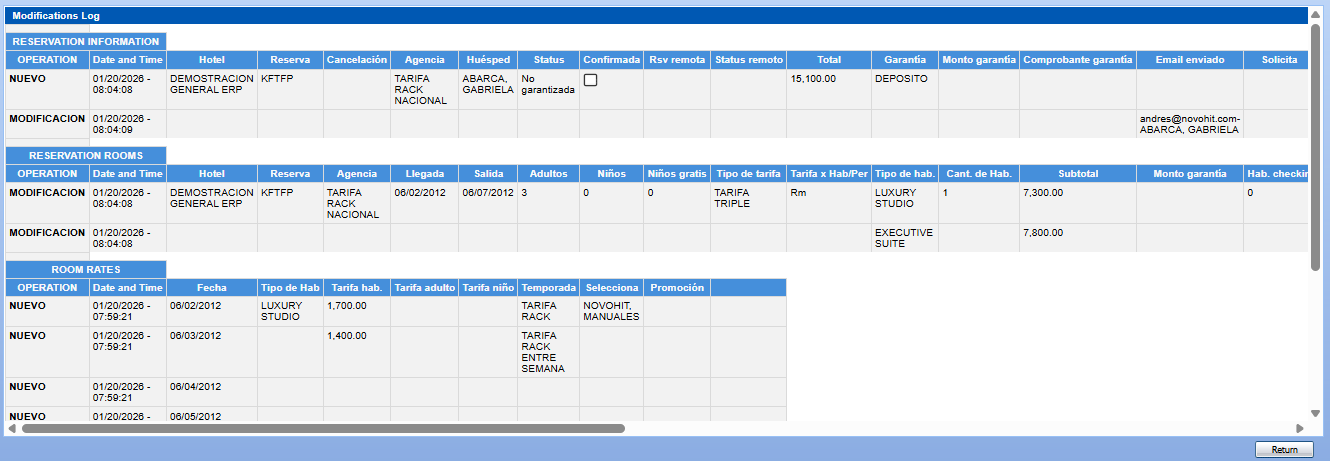 A window will open showing all changes to the reservation since its creation: