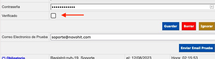 Esta casilla se enciende automaticamente cuando el servicio SMTP está validado por Novohit. Si no está activo, es probable que el servicio que usan no está activo por falta de creditos o alguna configuración faltante. En este caso, debe revisar la plataforma proveedora de correos transaccionales SMTP en Novohit.
