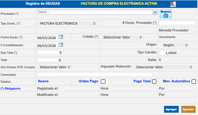 Ingreso, Alta, Registro de Deudas