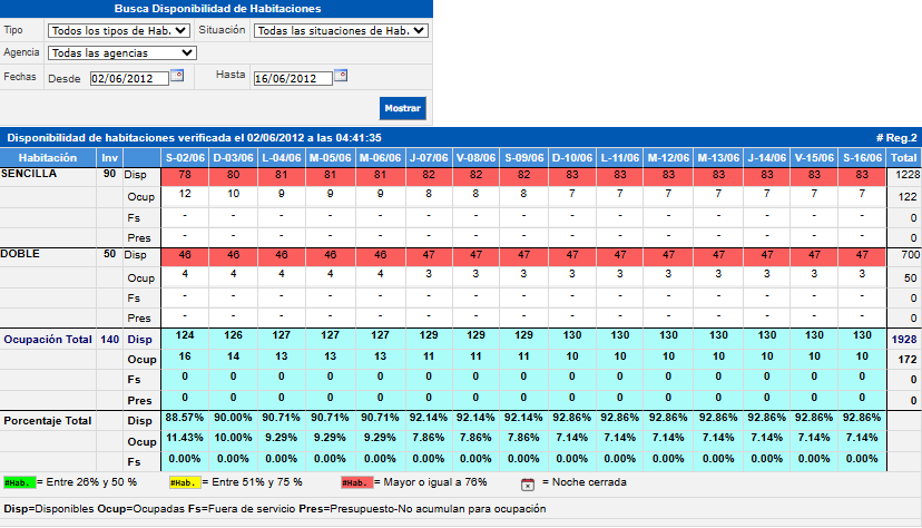 Este criterio de colores se aplica tanto en las consultas de habitaciones ocupadas como en las consultas de habitaciones disponibles.