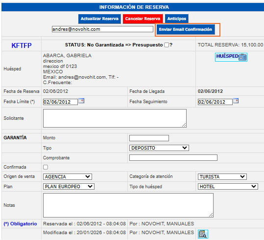 Esta opción permite obtener la información de una reservación en específico; normalmente se utiliza para enviar por correo electrónico una actualización de los cambios que se realicen a una reservación.
