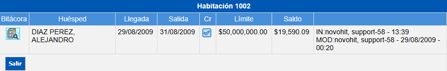 Huésped (Apellido / Nombre): Permite localizar registros según los datos del huésped.