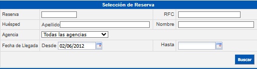 Es la sección de búsqueda de reservaciones donde podrá usar uno o más de los siguientes parámetros: