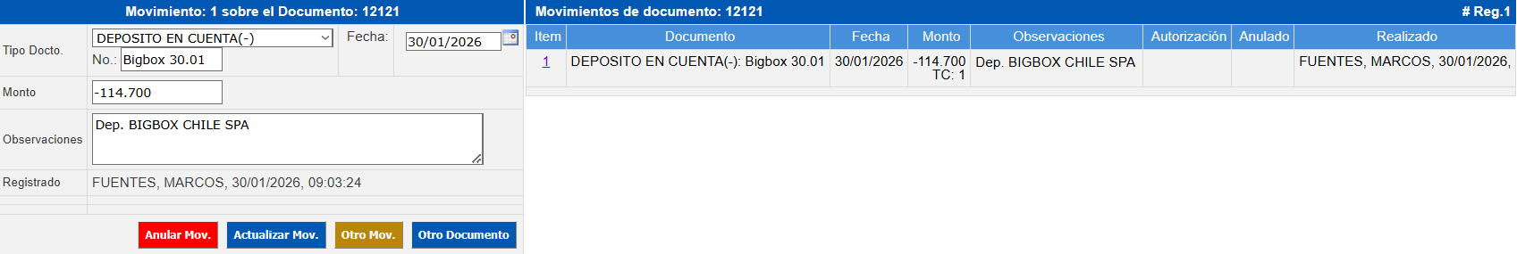 Esta sección facilita la consulta, revisión y posible modificación (si aún no están actualizados) de los movimientos registrados
