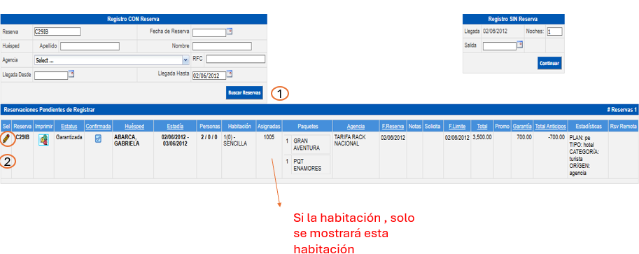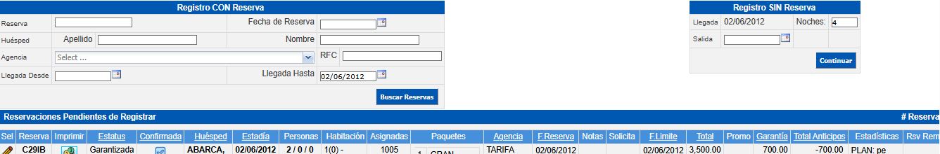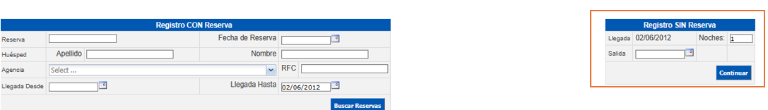 Registro con Reserva: son campos que se utilizan para realizar búsqueda de reservas para hacer Check-In.