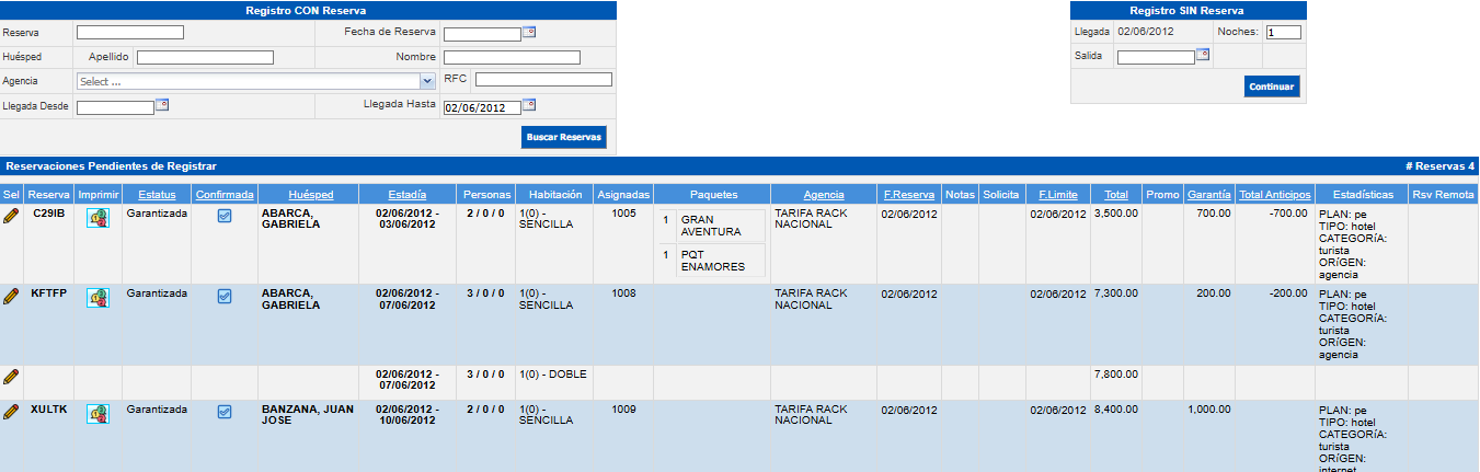 El termino Reserva solo se utiliza para las reservaciones efectivas, es decir, huéspedes que realizan previamente un proceso de reservación por algún canal existente: Llamada Telefónica, Web-HotelRSV, OTA, Operador, etc.