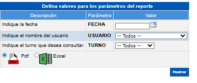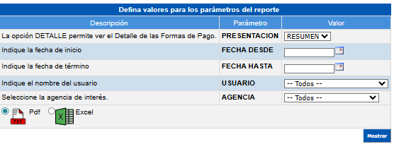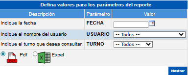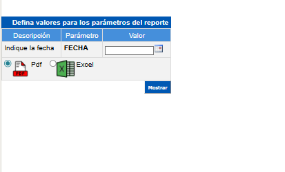 Para generar el reporte, la pantalla que contiene los parámetros se muestra en la siguiente imagen: |