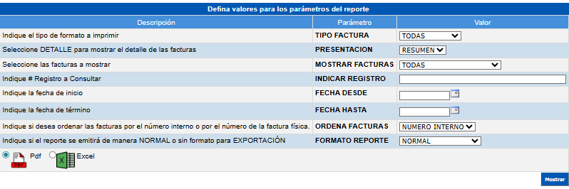 Lista Facturas Emitidas / Facturas Emitidas | Muestra una lista de facturas en resumen o detalle para un rango de fechas definidas por el usuario.