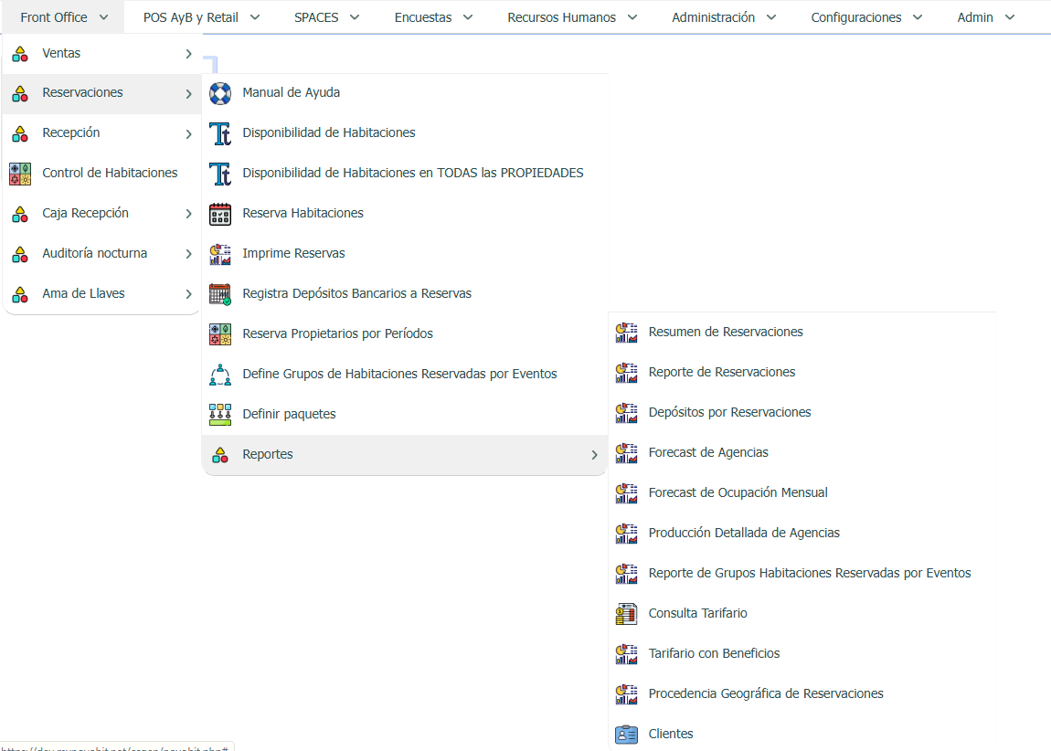 | Resumen de Reservaciones | Este reporte permite analizar las reservaciones registradas mediante una vista consolidada de resultados, combinando el detalle de cada reserva con indicadores y totales que facilitan la evaluación de la producción del período consultado.