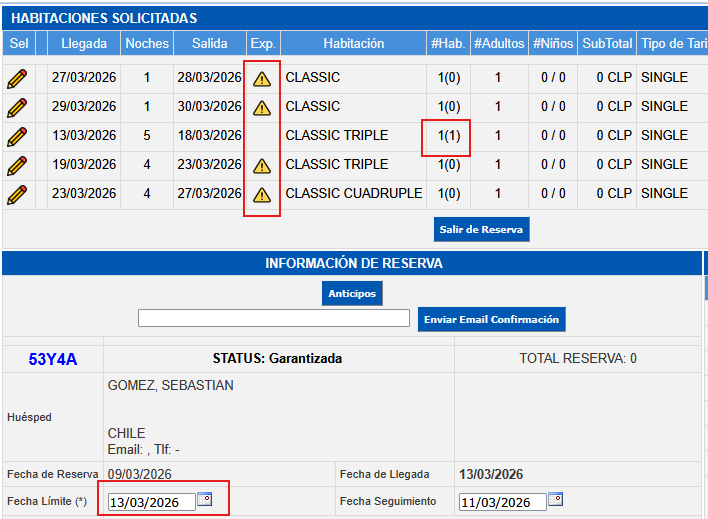 - 10(0) indica que la reserva es por 10 habitaciones y ninguna ha ingresado.